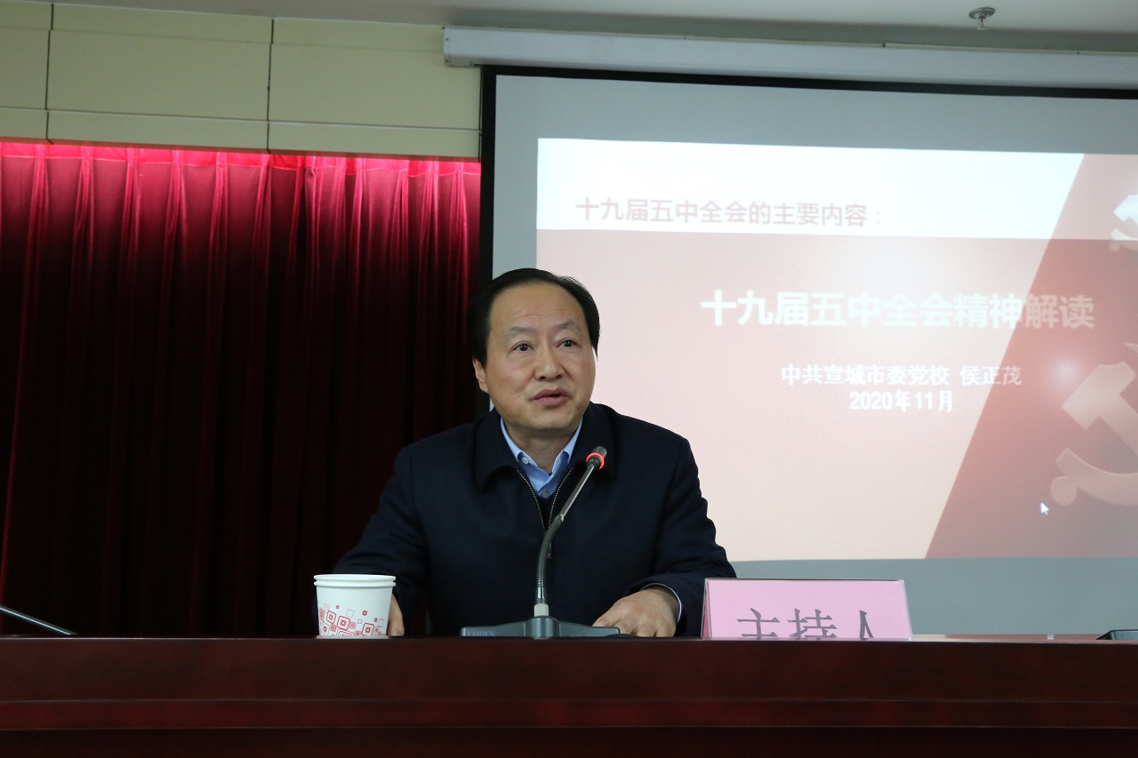 侯校長從十九屆五中全會召開的國內(nèi)國際背景、深刻領會十九屆五中全會的核心要義、基本實現(xiàn)社會主義現(xiàn)代化的創(chuàng)新戰(zhàn)略、深化改革開放保障實現(xiàn)民族偉大復興四個方面進行了闡述,宣講既有理論分析,又有實踐佐證,對全會的重要意義和核心要義作了全面解讀。