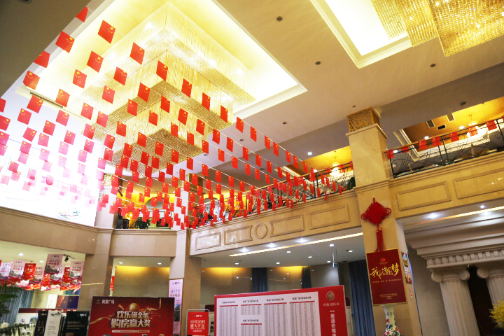 一是在公司門前設(shè)置“歡度國(guó)慶”的花壇,錦繡的花壇吸引路過的群眾紛紛駐足留影。售樓部大廳里懸掛的一面面嶄新的國(guó)旗,洋溢著喜慶歡樂的節(jié)日氣氛;二是在澄江路、民生路以及小九華路的路燈燈桿上懸掛國(guó)旗,鮮艷的國(guó)旗像一條飄動(dòng)的紅絲帶綿延不盡,讓來往的行人沉浸在自豪的中國(guó)紅之中;三是在建設(shè)工地四周的圍擋上張貼了迎國(guó)慶系列公益廣告,讓喜慶的氛圍更加濃烈。四是大唐御苑、鳳凰城、財(cái)富廣場(chǎng)等物業(yè)小區(qū)在張貼慶祝新中國(guó)成立70周年宣傳海報(bào)的同時(shí),集中力量對(duì)小區(qū)公共區(qū)域進(jìn)行清潔整理,共同維護(hù)好市容市貌。