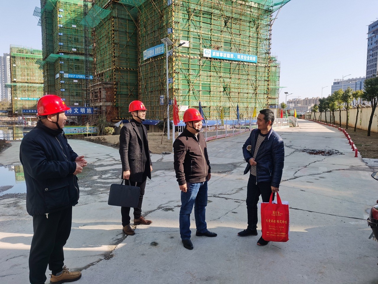 2月6日,集團公司總經(jīng)理衛(wèi)民帶隊開展春節(jié)前安全生產(chǎn)檢查,檢查組隨機抽查了名都電力公司、方家沖等項目,重點對企業(yè)安全生產(chǎn)管理制度建設(shè)、年度安全生產(chǎn)工作方案和應(yīng)急預(yù)案制定、疫情防控工作和安全生產(chǎn)責(zé)任落實情況,以及建筑工地節(jié)前停工安全檢查、春節(jié)期間值守安排、防疫物資儲備、疫情防控措施落實以及農(nóng)民工工資發(fā)放等情況開展了檢查。檢查中,衛(wèi)民強調(diào),要切實提高思想認識,認真開展節(jié)前停工安全檢查并及時消除安全隱患,切實做好春節(jié)期間應(yīng)急值守和疫情防控等安全管理工作。