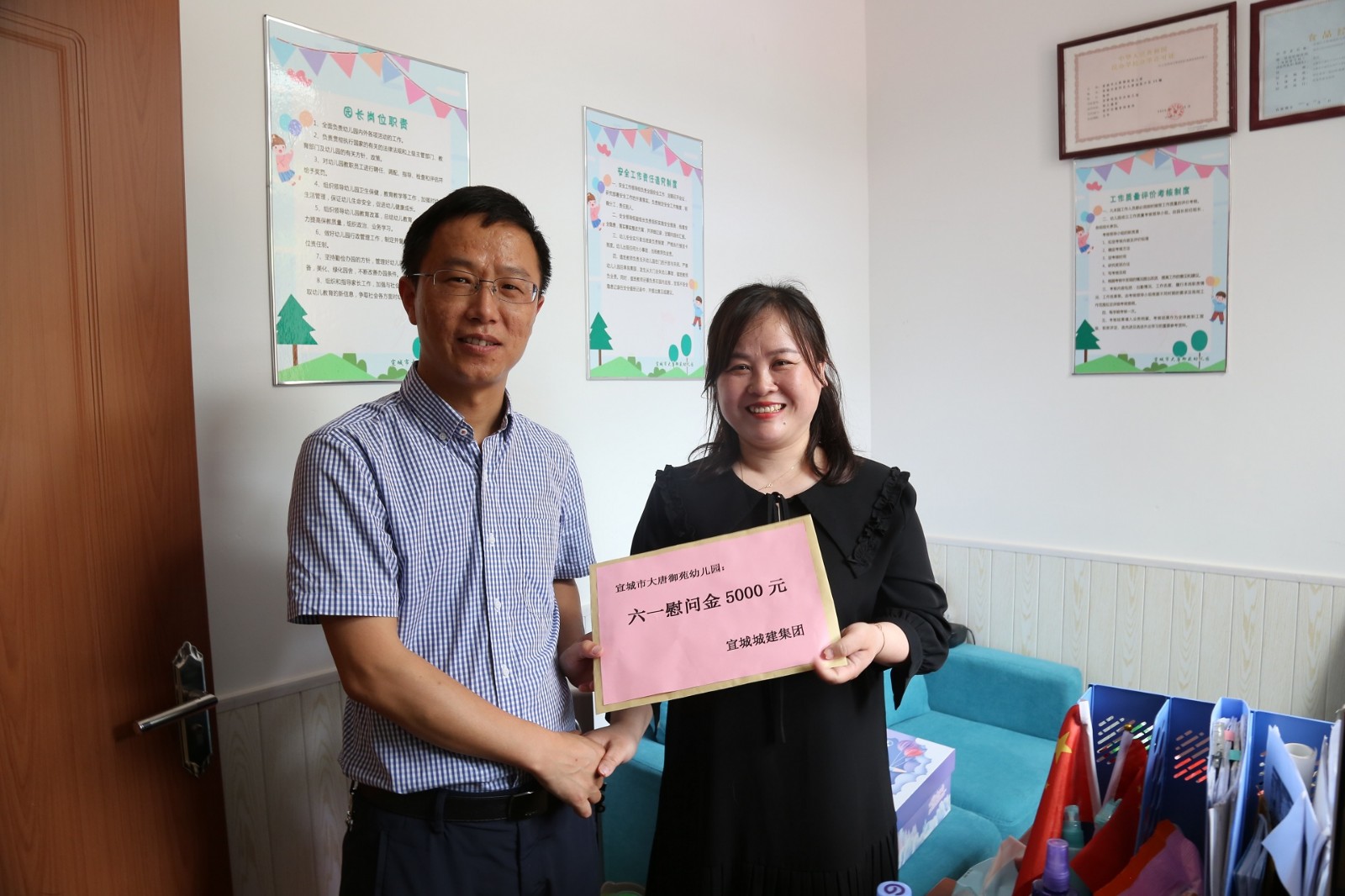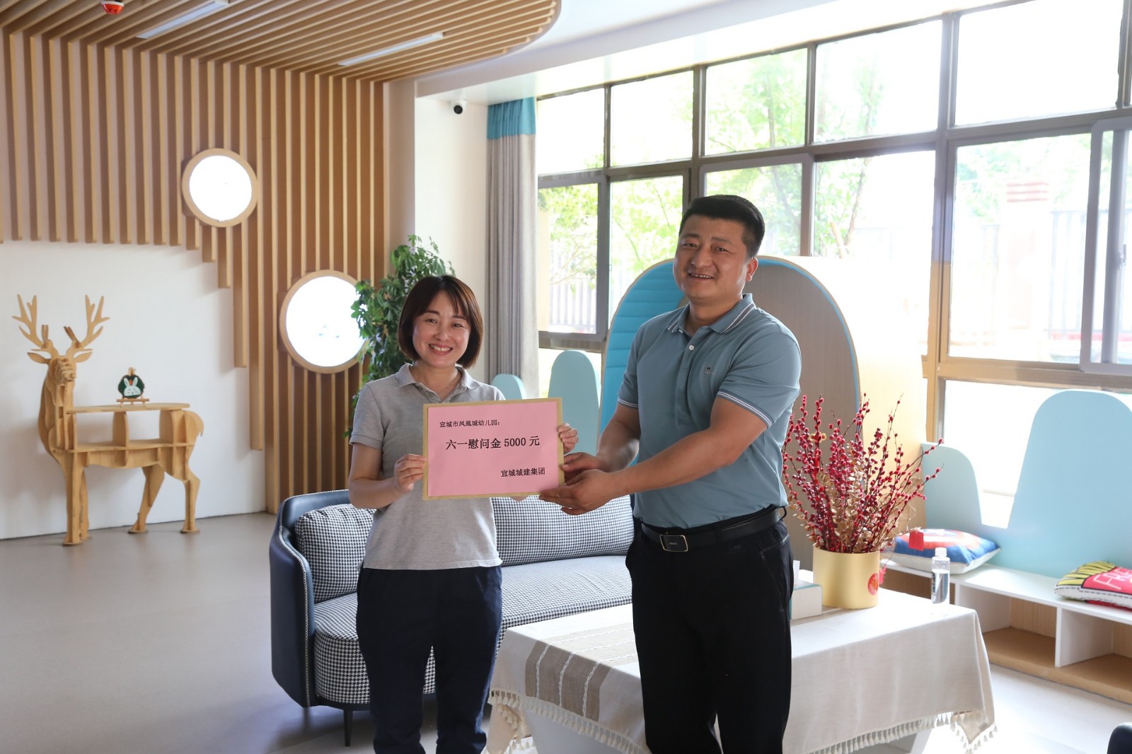 6月1日,市城建集團(tuán)董事、恒樂(lè)公司董事長(zhǎng)劉方潤(rùn)帶隊(duì)開(kāi)展“六一”兒童節(jié)慰問(wèn)活動(dòng),劉方潤(rùn)一行先后來(lái)到實(shí)驗(yàn)小學(xué)、鳳凰城幼兒園、大唐御苑幼兒園、十一小、六小,向?qū)W校送去“六一”慰問(wèn)金,感謝一直以來(lái)對(duì)北門(mén)棚改項(xiàng)目建設(shè)的大力支持,同時(shí)給孩子們帶去最美好的祝福。市城建集團(tuán)董事、北門(mén)棚改辦主任張宏強(qiáng)以及恒樂(lè)公司、營(yíng)銷(xiāo)公司主要負(fù)責(zé)人參加慰問(wèn)活動(dòng)。