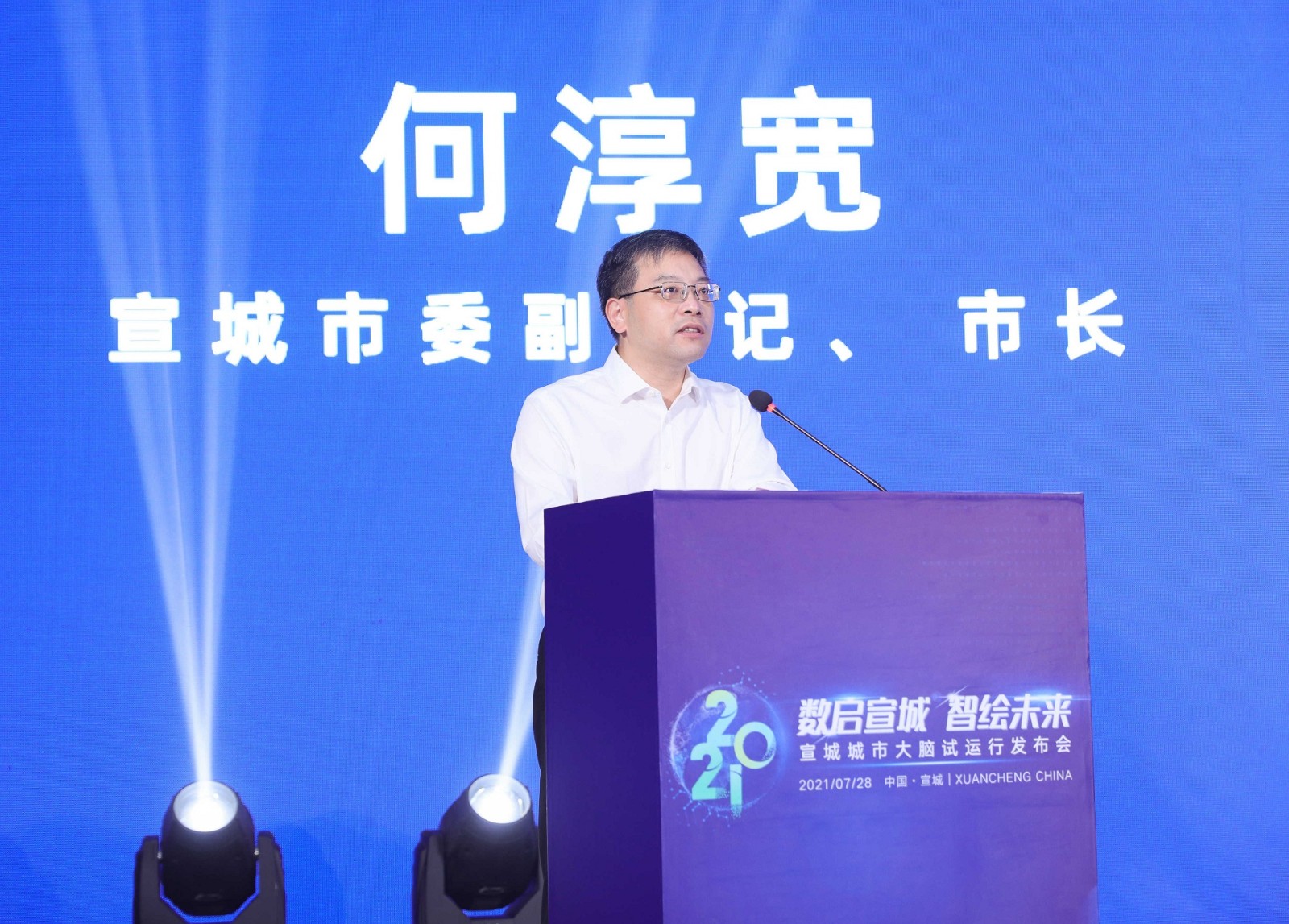 7月28日上午,宣城城市大腦試運(yùn)行發(fā)布會(huì)在敬亭湖賓館隆重舉行,發(fā)布會(huì)上宣城市委常委、常務(wù)副市長于靜波和科大訊飛股份有限公司高級(jí)副總裁張友國共同為宣城城訊信息科技有限公司(城建集團(tuán)與科大訊飛合資公司)揭牌。