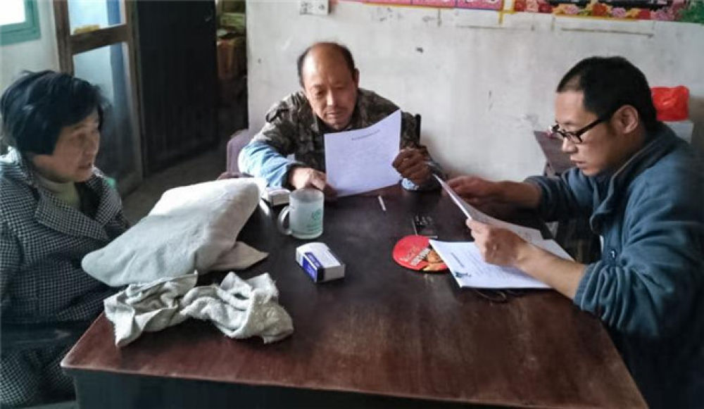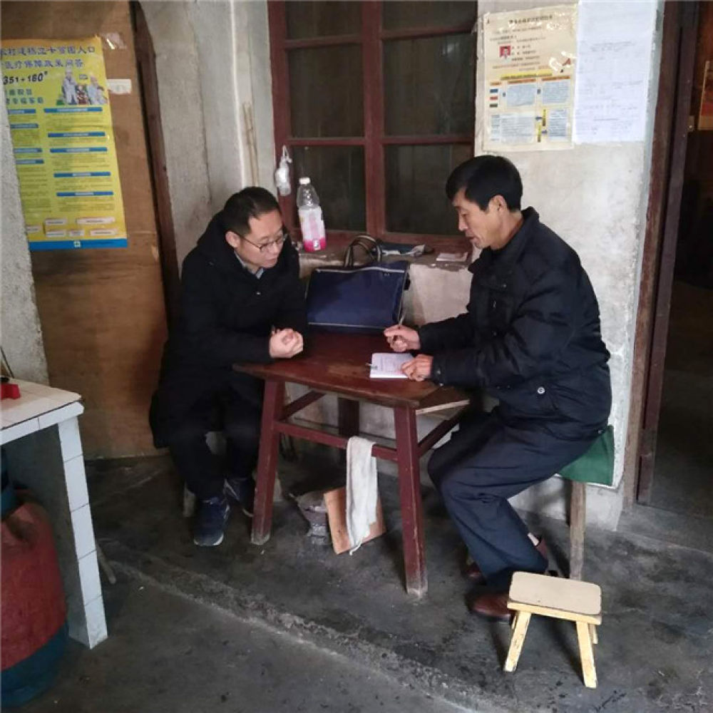 李夏(右)在安徽省績溪縣長安鎮(zhèn)高楊村走訪貧困戶(資料照片)。新華社發(fā)